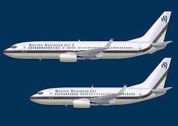 1996年7月,為滿足市場需求,制造較大、更完善、航程超過6000海里的公務機。波音公司與GE公司建立合資企業(yè)波音公務噴氣飛機公司,開始波音公務機的研制開發(fā)工作,1997年10月正式啟動BBJ計劃。 ![]() BBJ(Boeing Business Jet) BBJ: 基本型,以波音737-700為原型機發(fā)展而來,在737-700的基礎上對機翼和起落架部分進行加強,加裝融合型翼梢小翼,航程加大,可達11480公里,并于1998年9月4日首飛。已獲得180分鐘ETOPS(雙發(fā)延程飛行)批準,可以飛更多直飛航線。 ![]() BBJ BBJ2: 以波音下一代737-800飛機為原型,較之以737-700貨機為原型的BBJ,長度增加5.85米,空間加大25%。1999年10月開始啟動該計劃,2001年3月已開始交付使用。