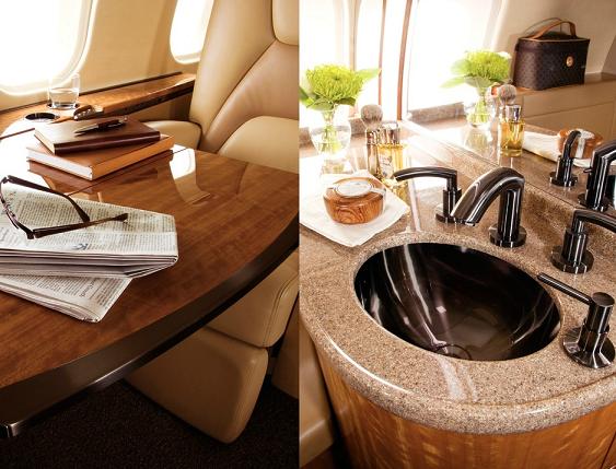 Interior Highlights 客艙要點 The sophisticated cabin of the Bombardier Global 5000 aircraft (龐巴迪環(huán)球5000公務(wù)機) provides passengers with more high-comfort living and working area than any other super-large business jet. Its quiet, airy atmosphere is highly conducive to relaxed productivity. Equipped with one of the world's most advanced, most reliable Cabin Electronic Systems, the aircraft offers business travelers the same high-caliber, high-speed connectivity capabilities and office options they enjoy on the ground, plus on-demand news/weather/sports packages as well as a theatre of entertainment choices.