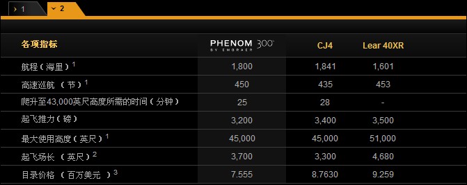 1 - 按照2008年5月出版的公務/商用飛機采購手冊的說明,所有飛機的航程均是在攜帶了符合NBAA IFR 規(guī)定的飛往100海里備降場的備份燃油量,并且搭載4位乘客每位重200磅的基礎上給出的。