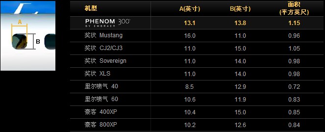 飛鴻300公務機窗戶尺寸對比
