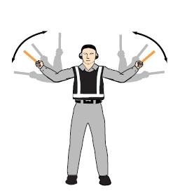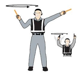 右臂舉于頭上水平畫圈,同時左手指向發(fā)動機(jī)     起動發(fā)動機(jī)