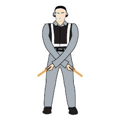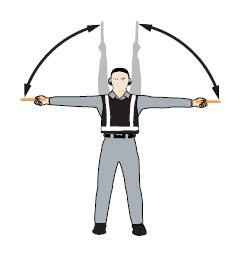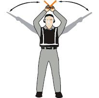 急速伸開雙臂,舉至頭部上方,交叉揮動雙臂。   緊急停住