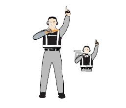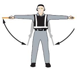 右臂與肩同平,由左肩穿過咽喉劃向右肩,同時左手指向發(fā)動機(jī)    關(guān)閉發(fā)動機(jī)