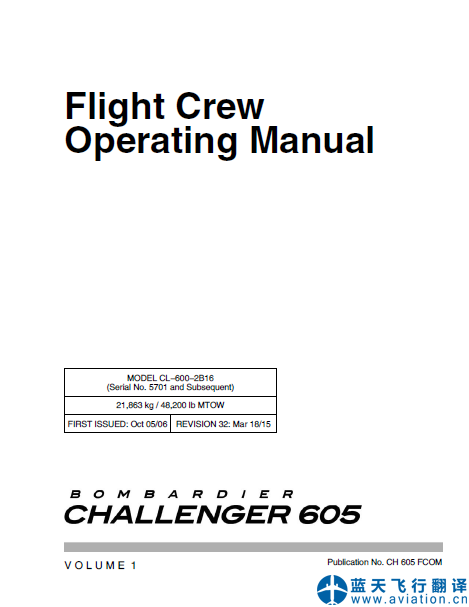 北京藍(lán)天飛行翻譯公司完成大型公務(wù)機(jī)公司的第32版/2015年3月18日版本龐巴迪挑戰(zhàn)者605全套飛行手冊(cè)翻譯任務(wù):第32版龐巴迪挑戰(zhàn)者605飛機(jī)飛行手冊(cè)、機(jī)組操作手冊(cè)、快速檢查單 Revision 32 Mar 18/15 Bombardier Challenger 605 Airplane Flight Manual, Flight Crew Operating Manual, Quick Reference Handbook Translation ![]() 龐巴迪挑戰(zhàn)者605飛機(jī)飛行手冊(cè) Bombardier Challenger 605 Airplane Flight Manual ![]() 龐巴迪挑戰(zhàn)者605機(jī)組操作手冊(cè)第一冊(cè) Bombardier Challenger 605 Flight Crew Operating Manual ![]() 龐巴迪挑戰(zhàn)者605機(jī)組操作手冊(cè) Bombardier Challenger 605 Flight Crew Operating Manual ![]() 龐巴迪挑戰(zhàn)者605快速檢查單第一冊(cè) Bombardier Challenger 605 Quick Reference Handbook ![]() 龐巴迪挑戰(zhàn)者605快速檢查單第二冊(cè) Bombardier Challenger 605 Quick Reference Handbook |