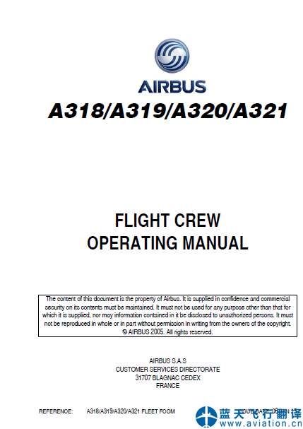 北京藍(lán)天飛行翻譯公司完成大型航空公司的16架空客A320機組操作手冊及快速檢查單翻譯任務(wù) A320 FLIGHT CREW OPERATING MANUAL and QUICK REFERENCE HANDBOOK Translation
