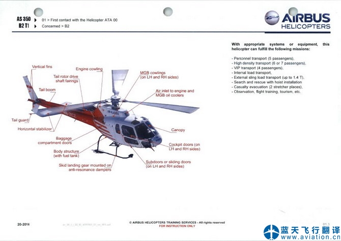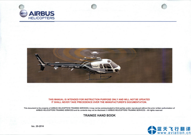 藍(lán)天飛行翻譯公司承接小松鼠AS350培訓(xùn)手冊翻譯任務(wù) AS350 Trainee Manual Translation