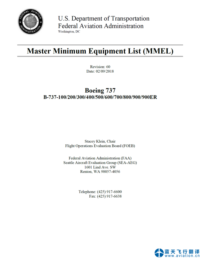 737 主最低設(shè)備清單 737 Master Minimum Equipment List (MMEL)