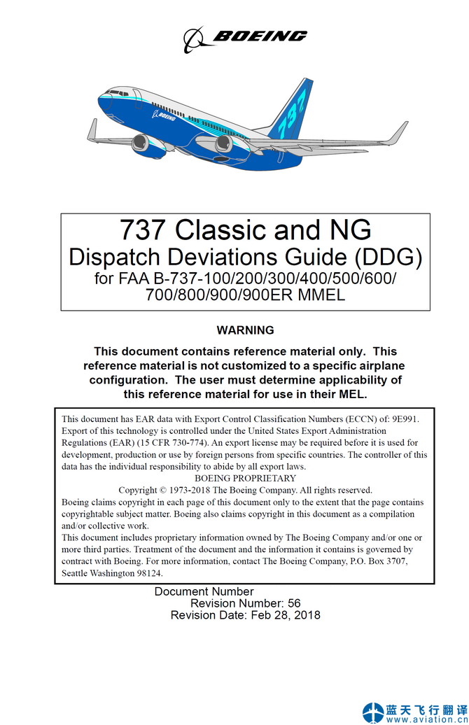北京藍(lán)天飛行翻譯公司承接航空公司波音737經(jīng)典型和737NG放行偏離指南(DDG)及主最低設(shè)備清單(MMEL)翻譯任務(wù) Boeing 737 Classic and NG Dispatch Deviations Guide (DDG) and Boeing 737 Master Minimum Equipment List (MMEL) Translation