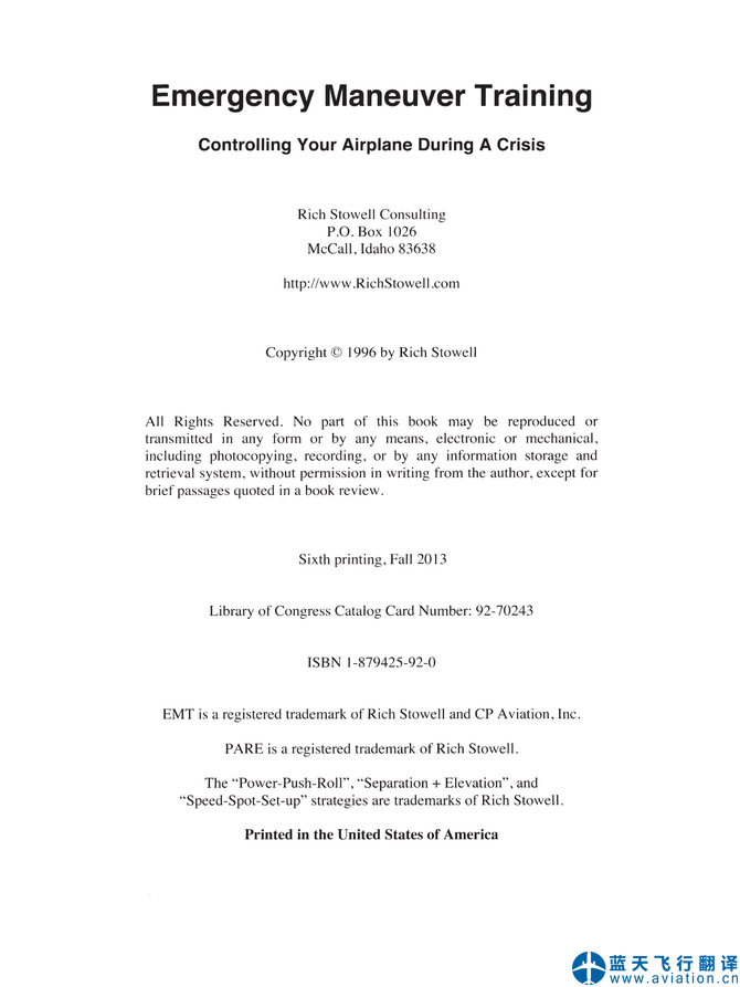 藍天飛行翻譯公司承接大型航校緊急機動飛行訓練手冊翻譯任務 Emergency Maneuver Training Manual Translation