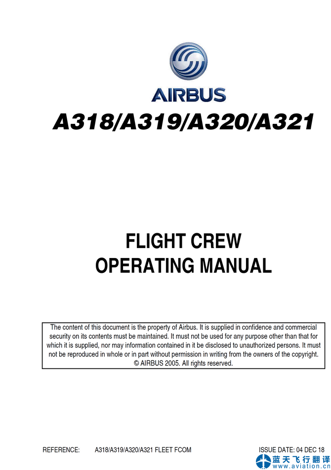 北京藍(lán)天飛行翻譯有限公司承接航空公司2018年12月4日版本空客A320飛行機(jī)組操作手冊翻譯任務(wù) 04 DEC 18 A320 FLIGHT CREW OPERATING MANUAL Translation