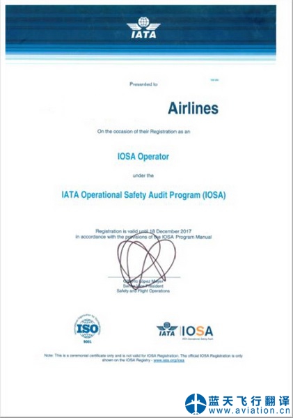 ![]() IOSA審計(jì)認(rèn)證證書 |