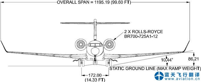 ![]() 灣流G650尺寸 G650 Dimension ![]() ![]() 灣流G650尺寸 G650 Dimension ![]() 灣流G650飛機操作手冊 G650 Aircraft Operating Manual G650以16100磅推力的(71.6千牛)羅爾斯-羅伊斯公司BR725發(fā)動機為動力,該發(fā)動機比BR710(G550的動力)功率大4.6%。新的后掠葉片風扇減小燃油燃燒和噪聲,而新的燃燒室降低排放。首飛定于2009年下半年,2011年獲美國和歐洲合格證,2012年進入服役。2012年飛機交付時的完成價5850萬美元,2013年開始從5850萬美元起價。