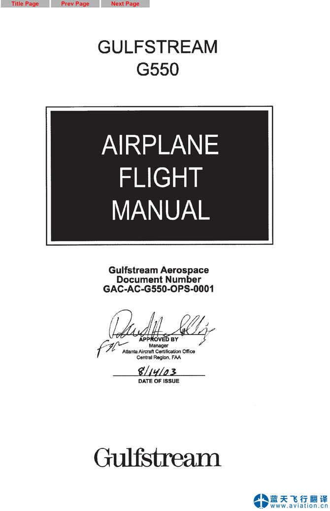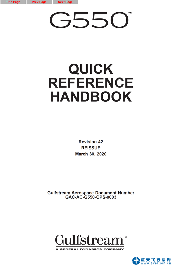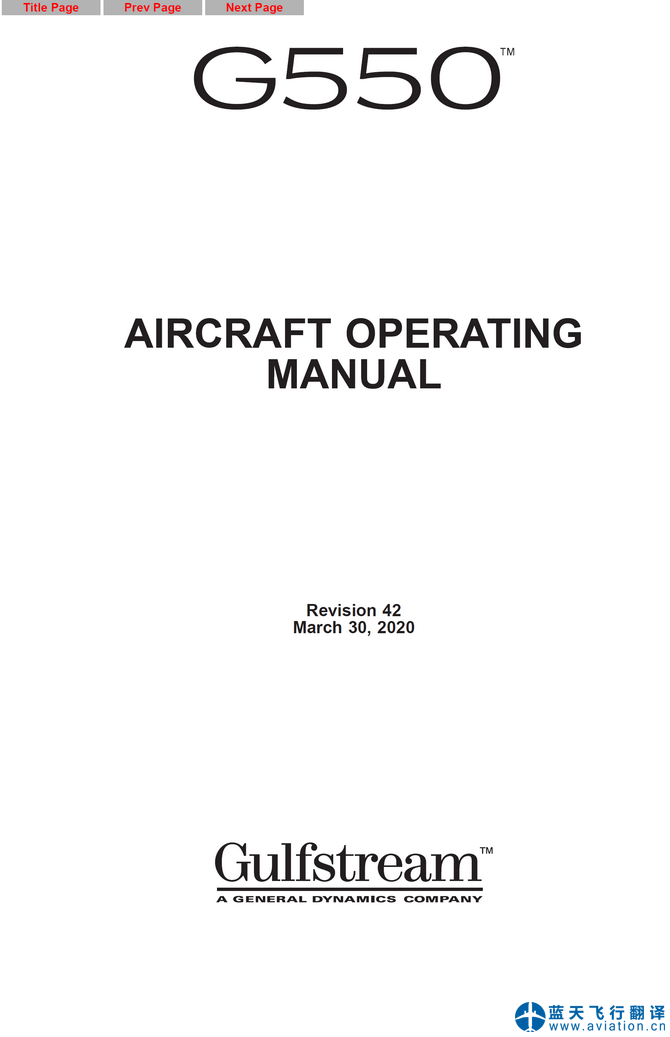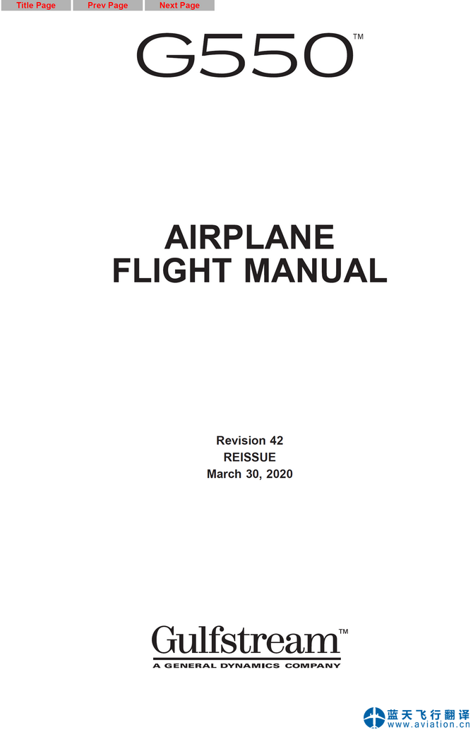 北京藍(lán)天飛行翻譯公司完成大型公務(wù)機公司的2020年3月30日,第42版灣流G550全套飛行手冊翻譯任務(wù) G550 Flight Manual Translation