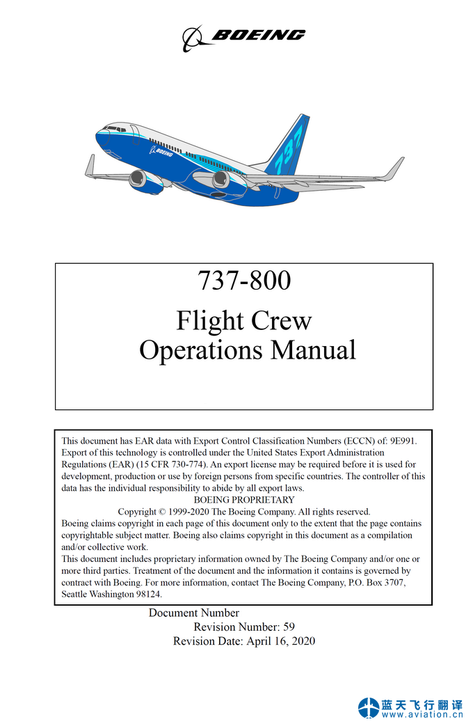 北京藍天飛行翻譯公司承接航空公司的737-800飛行機組使用手冊、快速檢查單和飛機飛行手冊翻譯任務 737-800 Flight Crew Operations Manual, Quick Reference Handbook and Airplane Flight Manual Translation