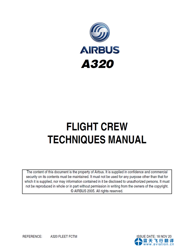 北京藍(lán)天飛行翻譯有限公司完成大型航空公司2020年11月18日版本空客A320全套飛行手冊翻譯任務(wù),包含空客A320飛行機(jī)組操作手冊(FCOM FLIGHT CREW OPERATING MANUAL)、A320快速檢查單(QRH QUICK REFERENCE HANDBOOK)、A320飛機(jī)飛行手冊(AIRPLANE FLIGHT MANUAL)和A320飛行機(jī)組技術(shù)手冊(FLIGHT CREW TECHNIQUES MANUAL)翻譯任務(wù) 26 OCT 20 A320 FLIGHT CREW OPERATING MANUAL, QRH QUICK REFERENCE HANDBOOK, AIRPLANE FLIGHT MANUAL and FLIGHT CREW TECHNIQUES MANUAL Translation