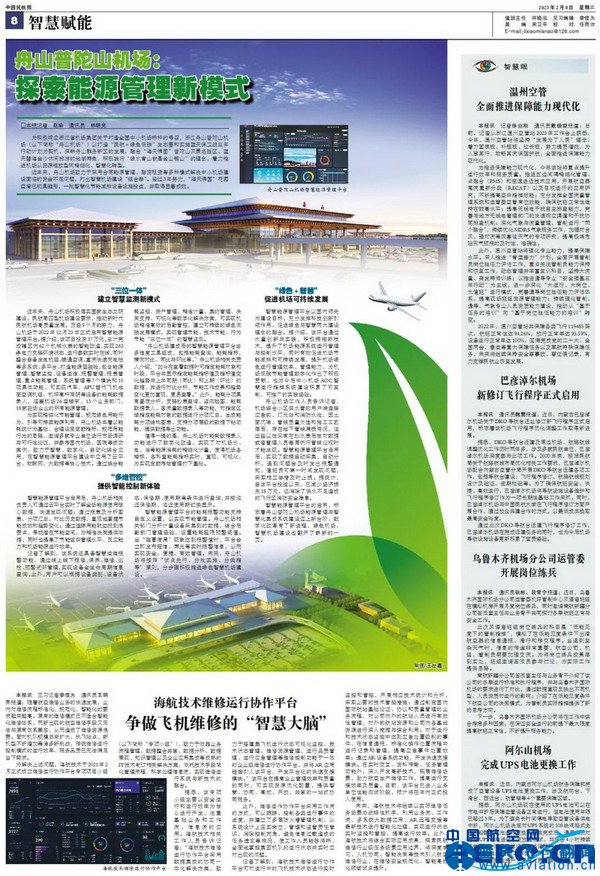 為積極響應浙江省機場集團關于打造全國中小機場標桿的號召,浙江舟山普陀山機場(以下簡稱“舟山機場”)以打造“民航+綠色低碳”生態(tài)圈和實施藍天保衛(wèi)戰(zhàn)三年行動計劃為契機,深耕舟山群島新區(qū)的發(fā)展,融合“海天佛國”普陀山風景名勝區(qū)、藍天碧海金沙休閑旅游的地域特色,積極踐行“綠水青山就是金山銀山”的理念,著力推進機場從資源粗放型向精細化、智慧化轉型。 近年來,舟山機場致力于采用合同能源管理、融資租賃等多種模式解決中小機場建設面臨的資金不足問題,打出智慧機場建設“組合拳”。經過3年努力,“海天佛國”花園空港已初具雛形,一批智慧化節(jié)能減排設備設施投運,并取得顯著成效。 “三位一體” 建立智慧監(jiān)測新模式 近年來,舟山機場積極落實國家生態(tài)文明建設、民航局四型機場建設要求,推動新時代民航機場高質量發(fā)展。歷經9個月的努力,舟山機場于2022年12月23日正式啟用智慧能源管理平臺。據(jù)介紹,該項目投資37萬元,總計完成轄區(qū)內62個機械水表的智能改造,實現(xiàn)263條電力支路環(huán)境狀態(tài)、運行參數(shù)實時在線,同時整合自備發(fā)電機組、暖通空調、直流快速充電樁等多系統(tǒng)、多平臺,打造能源駕駛艙,包含能源管理、智慧監(jiān)控、設備運維、報警管理、報表管理、重點能耗管理、系統(tǒng)管理等7個模塊和10項具體功能,可實現(xiàn)汽車、APU替代飛機地面空調機組、機坪高桿照明等設備的能耗數(shù)據(jù)錄入,涵蓋機場26座樓宇、13個業(yè)務部門、18家駐場企業(yè)的所有能源管理。 為實現(xiàn)精細化節(jié)能管理,規(guī)范綠色用能行為,引導可持續(xù)能源利用,舟山機場本著以能耗統(tǒng)計為基礎、合理設定定額指標、規(guī)范用能行為的思路,邀請多家專業(yè)單位進行市場調研與可行性論證,并參考國內機場、醫(yī)院等成功案例,致力于智慧、數(shù)字化、自動化綜合應用,在智慧能源管理平臺建設中應用了云平臺、物聯(lián)網、大數(shù)據(jù)等核心技術。通過綜合能耗監(jiān)控、資產管理、精準計量、集約管理、決策支持、可視化等數(shù)字化解決方案,可實現(xiàn)機場精準高效的后勤管控,建立可持續(xù)的綠色低碳發(fā)展模式,實現(xiàn)管理節(jié)能、技術節(jié)能、行為節(jié)能“三位一體”的智慧監(jiān)測。 “舟山機場建成后的智慧能源管理平臺由多維度工具組成,包括能耗查詢、能耗指標、橫向對比、同比與環(huán)比等。”舟山機場相關負責人介紹,“如今在查看數(shù)據(jù)時可指定能耗對象和時段,平臺將顯示指定能耗指標值及指標值變化趨勢與上年同期(同比)和上期(環(huán)比)的數(shù)據(jù),并進行對比分析,節(jié)能工作成果和趨勢變化更加直觀、更易查看。”此外,能耗分項具有晝夜分析、支路抄表查詢、監(jiān)測腦圖、能耗數(shù)據(jù)錄入、客流量數(shù)據(jù)錄入等功能,對指定區(qū)域指定能耗對象的數(shù)據(jù)進行分項匯總,生成能耗分項結構圖表,支持分項層級的數(shù)據(jù)下鉆功能,提供數(shù)據(jù)導出功能。