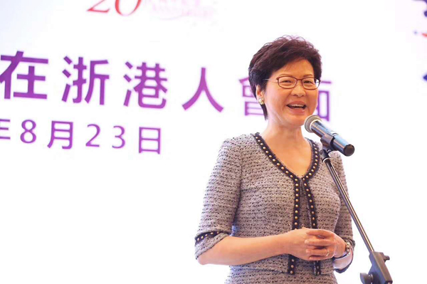 香港特別行政區(qū)行政長官林鄭月娥女士在會上致辭