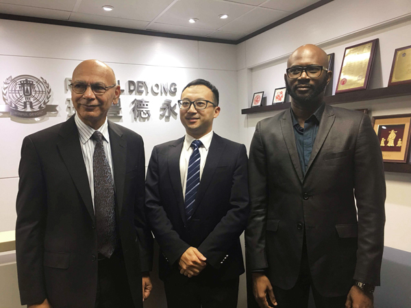 (集團高層龔彥斌先生與移民部長Les Khan先生和律師Scantlebury先生在我司香港總部合影)