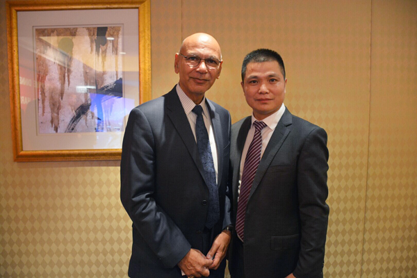 (集團董事長陳洪松先生與移民部長Les Khan先生在見面會上合影)