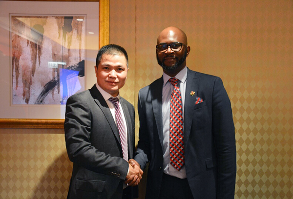 11月8日,瑞豐德永集團董事長陳洪松先生、集團高層龔彥斌先生,在我司香港總部(力寶中心)歡迎遠道而來的圣基茨?尼維斯總理Timothy Harris先生、移民部長Les Khan先生和律師Scantlebury先生。