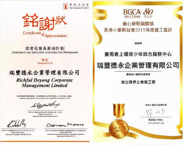 ? 榮獲香港小童群益會頒發(fā)的杰出商界企業(yè)義工獎