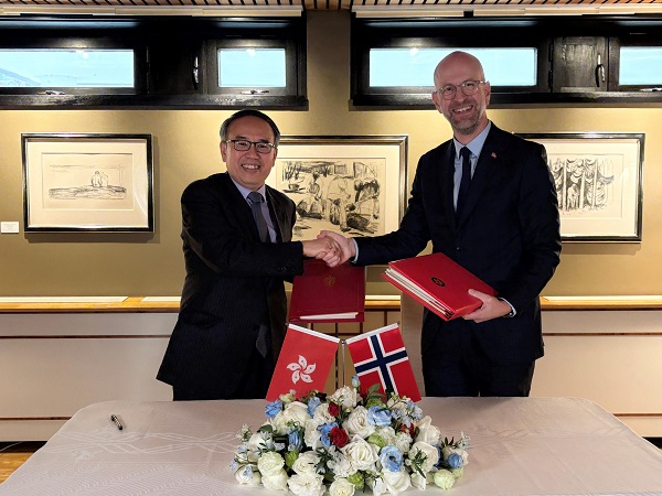 財(cái)經(jīng)事務(wù)及庫(kù)務(wù)局局長(zhǎng)許正宇十二月十六日在北京與挪威駐華大使戴偉恩進(jìn)行雙邊會(huì)議,并代表香港特別行政區(qū)(特區(qū))政府與挪威王國(guó)政府簽署全面性避免雙重課稅協(xié)定。