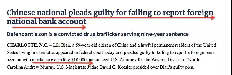 2019年7月8日,住在北卡夏洛特市的59歲中國(guó)公民Lili,出現(xiàn)在聯(lián)邦法庭認(rèn)罪。她持有美國(guó)綠卡,承認(rèn)在中國(guó)境內(nèi)某金融機(jī)構(gòu),有超過(guò)1萬(wàn)美元的賬戶,且未向財(cái)政部上報(bào)外國(guó)銀行和金融帳戶表格(Foreign Bank and Financial Account Form,F(xiàn)BAR),繼而遭到聯(lián)邦起訴。