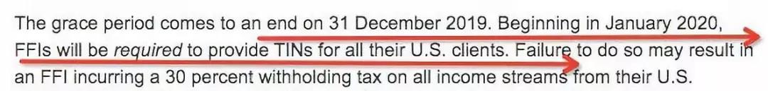 所有美國(guó)公民、美國(guó)綠卡持有人,以及常住美國(guó)的人士注意了:從2019年12月31日開(kāi)始,美國(guó)國(guó)稅局IRS,將最終結(jié)束其長(zhǎng)期運(yùn)行的《海外賬戶納稅法案》(FATCA“肥咖”條款)寬限期。寬限期一旦結(jié)束,只要你賬戶符合“美國(guó)人身份”(后文有詳細(xì)解讀),就必須提供美國(guó)稅號(hào)(TIN),海外賬戶被查出沒(méi)有申報(bào),除了會(huì)面臨高額罰款外,賬戶會(huì)被美國(guó)國(guó)稅局凍結(jié),甚至面臨刑事處罰!這意味著希望避免賬戶凍結(jié)的美國(guó)納稅人,現(xiàn)在只有不到一個(gè)星期的時(shí)間,來(lái)應(yīng)對(duì)可能的后果。