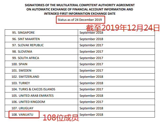 截至2019年12月24日,共有108個司法管轄區(qū)簽署CRS協(xié)議。