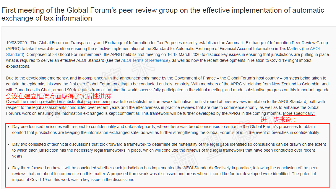 在2020年3月,為了加強(qiáng)稅務(wù)、信息交換透明度,OECD全球論壇成立了一個自動信息交換對等審查小組(APRG),用來監(jiān)督100多位加入CRS協(xié)議的國家和地區(qū)是否落實AEOI標(biāo)準(zhǔn)。