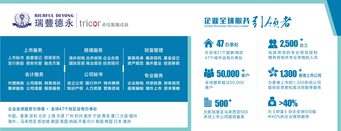瑞豐德永集團(tuán)直接代辦全球近30個(gè)屬地的離岸公司注冊(cè)。
