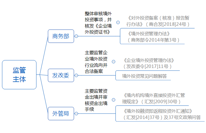 ODI的監(jiān)管架構(gòu)涉及的政府單位主要有商務(wù)部、發(fā)改委和外管局。