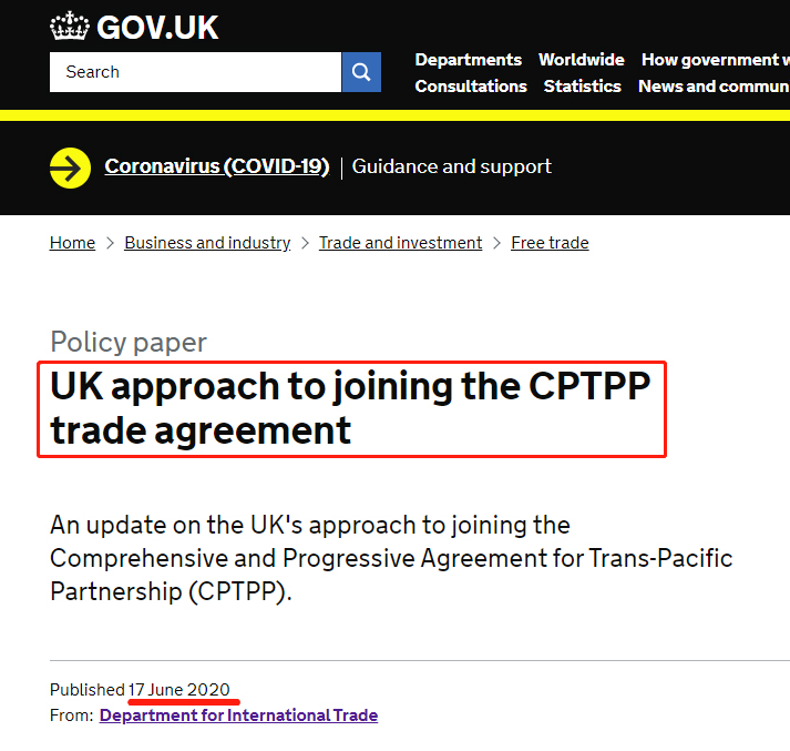 6月17日,英國政府在其官網(wǎng)宣布,將尋求加入 “全面與進(jìn)步跨太平洋伙伴關(guān)系協(xié)定”(CPTPP),也就是美國“退群”后的TPP。