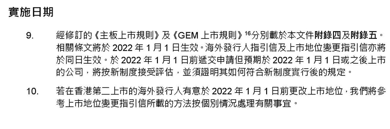 轉(zhuǎn)為主要上市而成為雙重主要上市發(fā)行人,所有自動豁免即告撤銷;港交所一般不會就全面遵守《上市規(guī)則》條文給予寬限期。