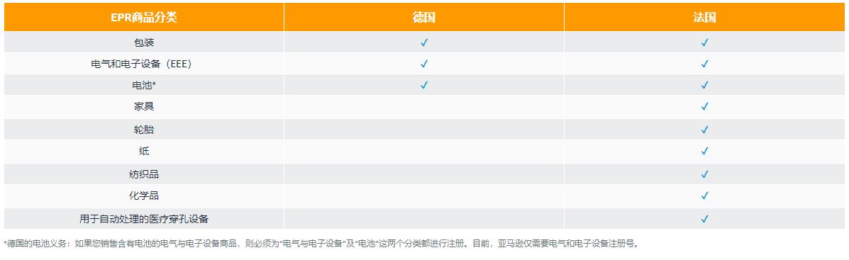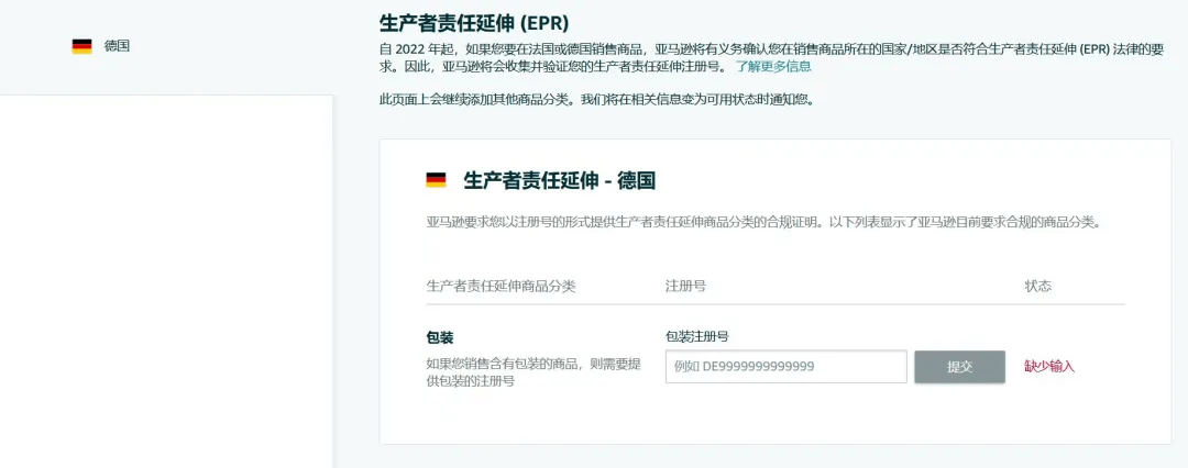 3. 相同的EPR商品在不同站點上需要分開注冊:對于在亞馬遜德國站、法國站上銷售的EPR商品分類,每個國家/地區(qū)都有不同的注冊要求、注冊流程以及授權機構,因此德國和法國需要分開注冊,并不通用。
