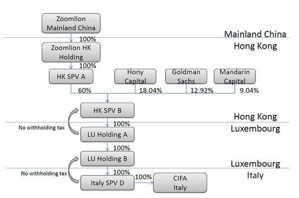 1. HK中有3個投資方進入,Zoomlion HK Holding和 HK SPV B的存在確保了不管投資方如何變動,香港往上到中國和香港向下到盧瑟堡的結(jié)構(gòu)不會受影響。