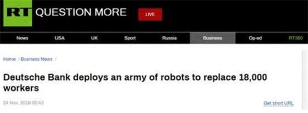 截至11月下旬,自去年以來,德銀已經(jīng)裁員4000多人,自7月宣布裁員計劃以來裁員了約1000人。作為其機(jī)器人自動化計劃的一部分,德意志銀行已部署用機(jī)器人代替1.8萬人裁員計劃中的部分員工,幫助德銀從戰(zhàn)略上縮小規(guī)模。
