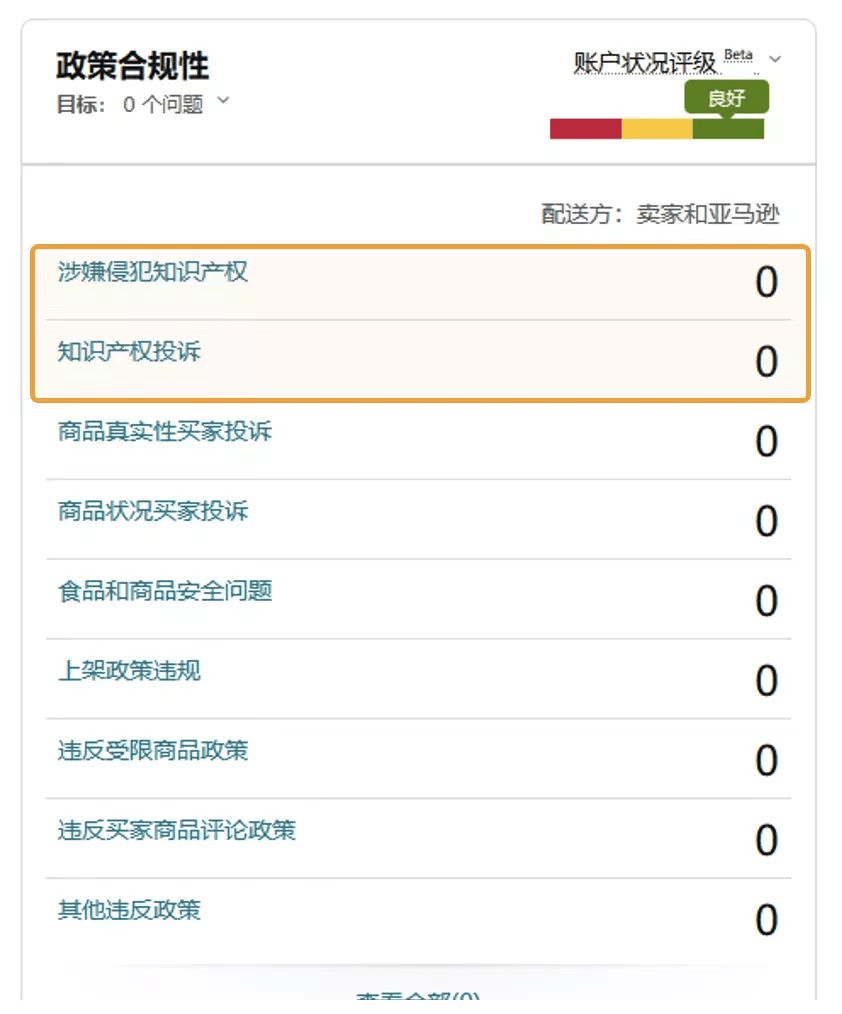 通過“商品政策合規(guī)性”頁面,您可以看到違反亞馬遜政策的商品記錄。當您看到“涉嫌侵犯知識產(chǎn)權(quán)” 、 “知識產(chǎn)權(quán)投訴” 兩欄內(nèi)容有警示,則意味著可能存在侵權(quán)問題。接下來您可以對該頁面中顯示的違規(guī)問題進行申訴。