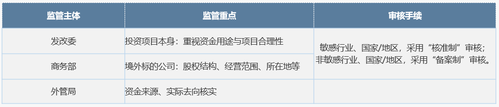 根據(jù)相關(guān)法規(guī)要求,境內(nèi)非國有企業(yè)進行境外直接投資,投資項目需要獲得商務(wù)部門的核準(zhǔn)或備案、發(fā)改委的核準(zhǔn)或備案、外管局登記備案才能進行境內(nèi)資金的合規(guī)出境;國有企業(yè)需額外向國資委遞交審批報備。