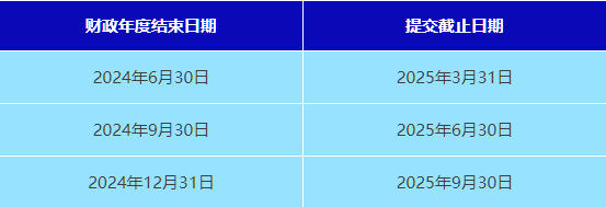 年度申報表 - 財政年度結(jié)束后9個月