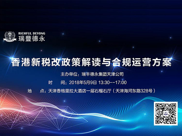 2018年5月9日,瑞豐德永將在天津舉辦“香港新稅改政策解讀與合規(guī)運(yùn)營方案”專題研討會(huì),特邀專家為您全方位解讀稅改新政,從法律和稅務(wù)的專業(yè)視角,真正幫助企業(yè)家理解新政背景下,實(shí)現(xiàn)合法合規(guī)經(jīng)營的稅務(wù)籌劃正確之道。